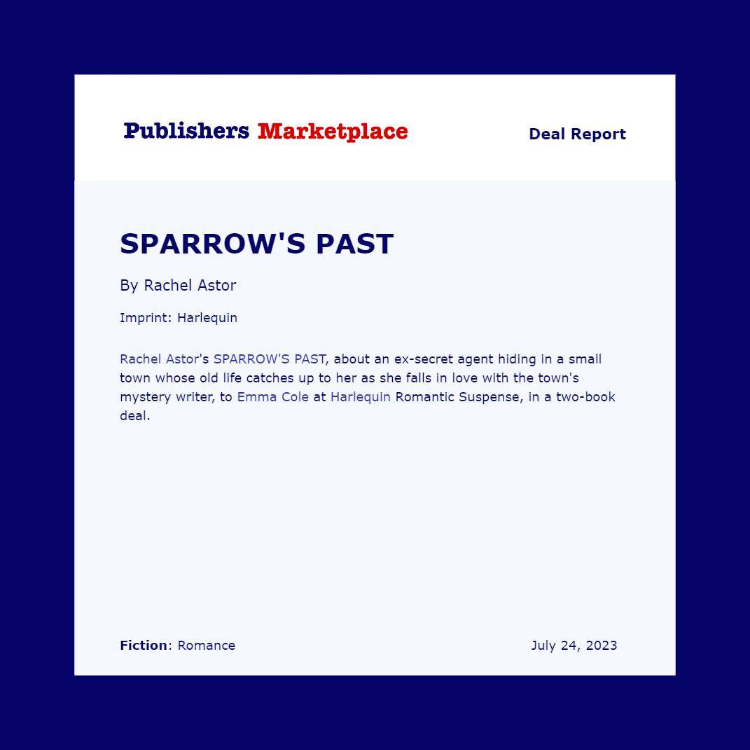 Welcome!Thanks so much for visiting! Take a look around and keep an eye on this page for publishing news, course updates, upcoming releases, and what Iām up to. Rachel Astor 7/29/23 Rachel Astor 7/29/23 More Romantic Suspense Coming Your Way! Read More Newer Posts Older Posts
